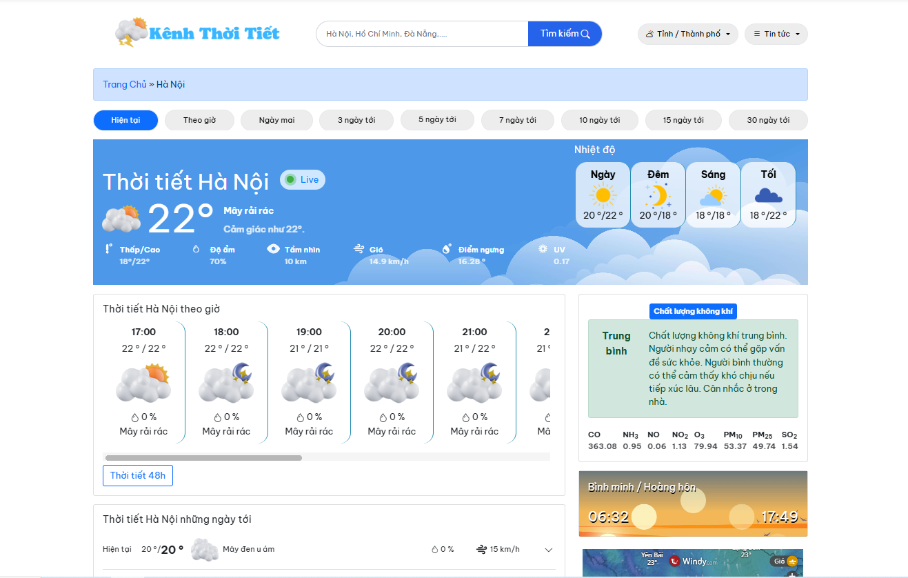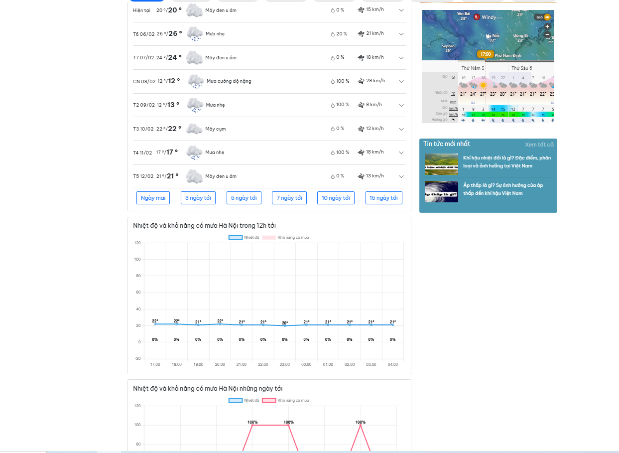Source trang web dự báo thời tiết sử dụng dữ liệu tỉnh, xã mới sau khi sáp nhập đơn vị hành chính từ ngày 01-07-2025.